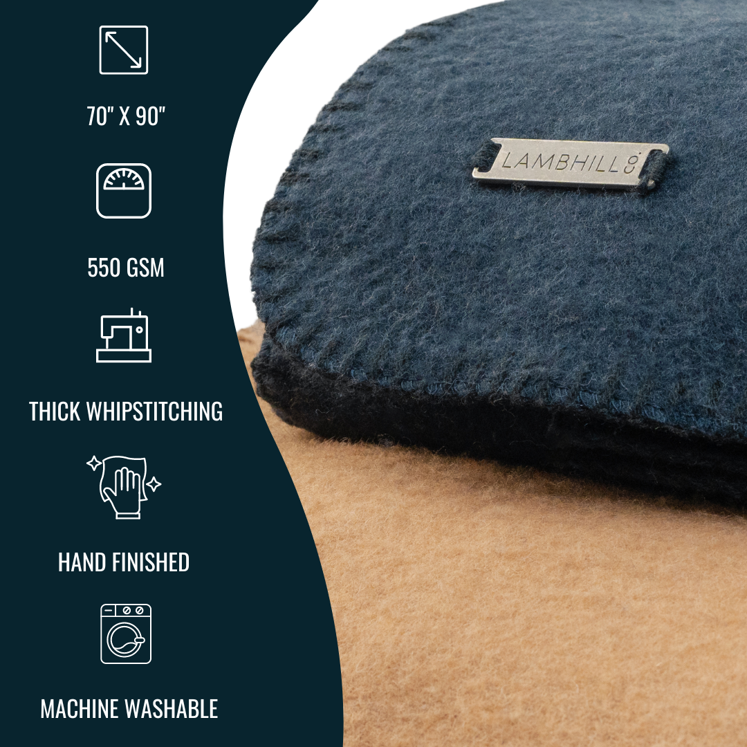 Each blanket is hand-embellished and completed by a team of skilled artisans who are dedicated to ensuring that no piece is left unfinished. It is with the utmost effort that we preserve the inherent essence and tactile qualities of wool in our blankets. We embrace the natural perfections of the look and aesthetic of wool.